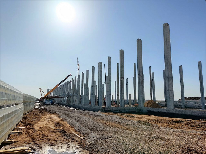 На площадке будущего предприятия в настоящее время ведутся строительные работы. Выполнен фундамент производственного здания, полностью залиты колонны железобетонного каркаса, ведётся монтаж металлокаркаса. К концу апреля планируется завершить устройство сэндвич-панелей.