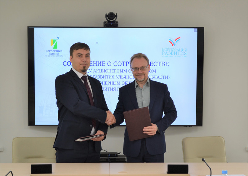 В ходе визита пензенской делегации в регион руководитель Корпорации развития Ульяновской области Сергей Васин и генеральный директор Корпорации развития Пензенской области Руслан Ягудин подписали соглашение о сотрудничестве.