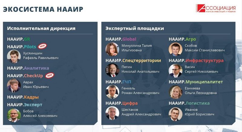 В рамках встречи генеральный директор Корпорации развития региона Сергей Васин назначен руководителем экспертной площадки «Инфраструктура», которая будет действовать при НААИР.