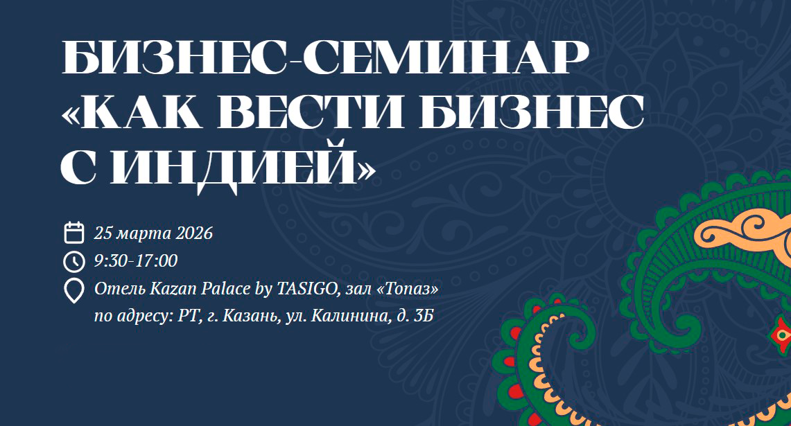 25 марта 2026 года в г. Казани состоится бизнес-семинар «Как вести бизнес с Индией».
