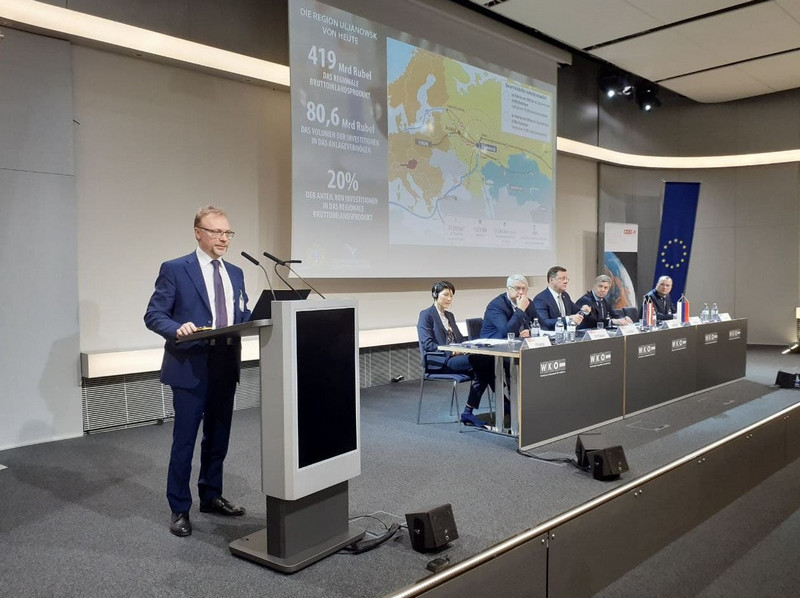 В рамках деловой поездки Алексей Русских провёл переговоры с компанией, осуществляющей продвижение экспорта товаров ульяновских производителей. Достигнута договоренность с Палатой экономики Австрии и Торгпредством Австрии в России о визите в следующем году в Ульяновскую область крупной иностранной бизнес-делегации.