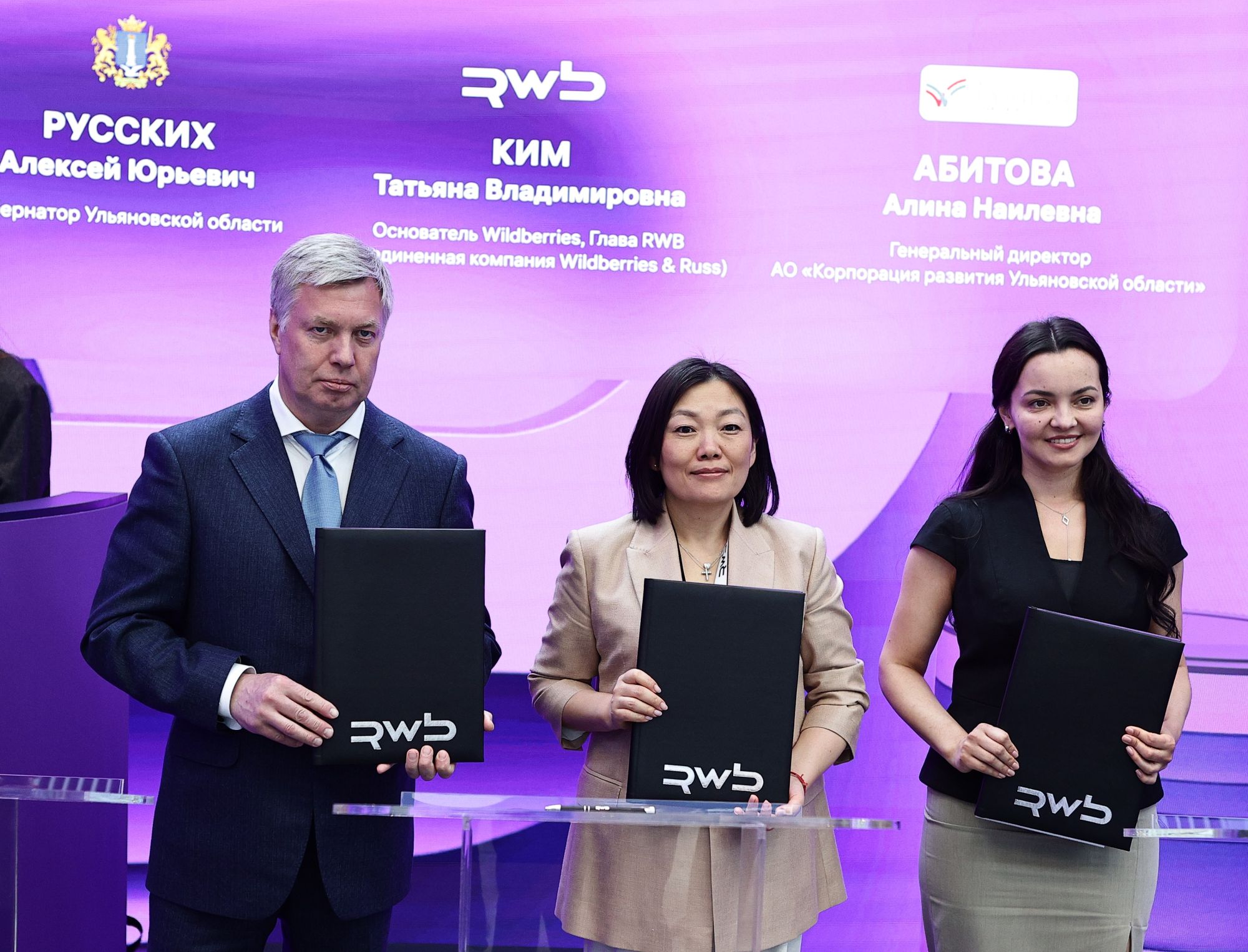 Компания РВБ (Wildberries&Russ) подписала соглашение с Правительством Ульяновской области о строительстве распределительного центра. Соглашение было заключено на площадке Петербургского международного экономического форума, губернатор Алексей Русских, основатель Wildberries Татьяна Ким и гендиректор Корпорации региона Алина Абитова поставили свои подписи под документом.